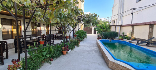 К услугам отдыхающих: закрытый двор с местами для отдыха, бассейн (3х6 метров, 1,5 глубина), бесплатный Wi-Fi на территории, утюг, гладильная доска, стиральная машина за доп. плату.