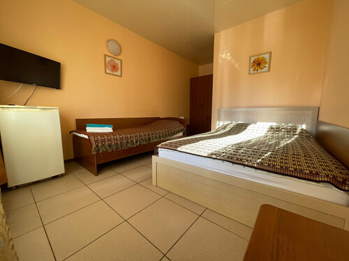 - 2-местные номера с удобствами. В номерах туалет, душ, телевизор, холодильник, чайник, кондиционер, балкон. Основным местом может быть диван. Номера с балконом находятся на 5 этаже.