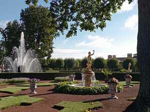 является одним из крупнейших дворцово–парковых ансамблей в России и государственным музеем – заповедником. Он находится на южном побережье Финского залива, входит в топ – 10 самых красивых дворцово–парковых комплексов мира. Главные символы Петергофа – это, конечно же, фонтаны. Петергоф нередко называют русским Версалем. На территории Нижнего парка расположено 150 фонтанов и 6 огромных каскадов. Самый крупный — Большой каскад. Он признан самым большим каскадом в мире – в его состав входит 60 фонтанов и 250 скульптур. В центре Большого Каскада расположены Большой и Малый гроты. Вся вода, перетекающая по Большому каскаду, попадает в Чашу. На территории Нижнего парка расположено огромное количество фонтанов в форме скульптур, каждая из которых повествует свою историю: Нимфа и Данаида, Адам и Ева, Китовый, Тритон и т.д.