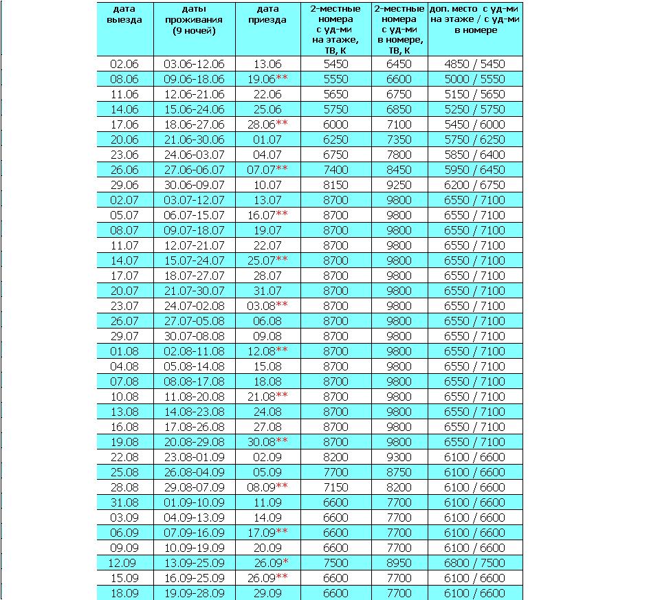 Условия заезда: информация по отправлению. Заселение в гостиницу после 12:00, освобождение номеров до 10:00.