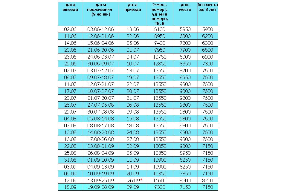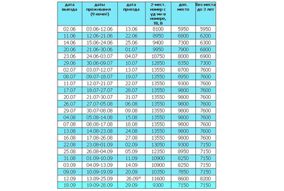 Внимание: стоимость тура рассчитывается по количеству ночей.