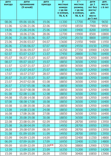 Внимание: стоимость тура рассчитывается по количеству ночей.