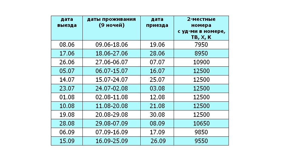 Внимание: стоимость тура рассчитывается по количеству ночей.