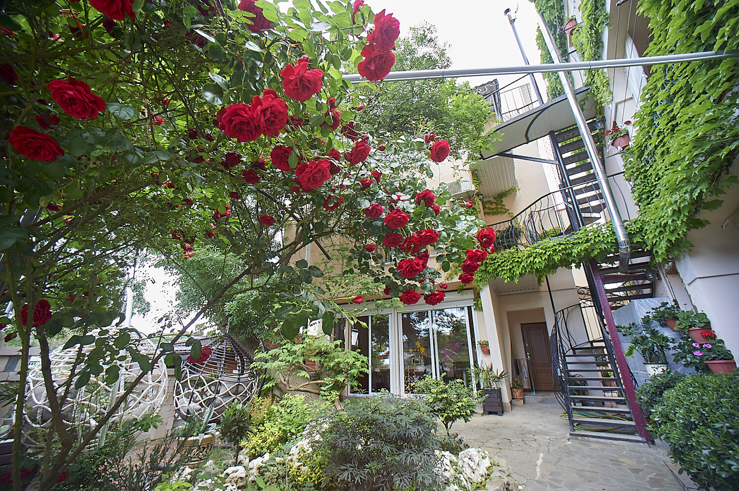 Расположение: гостиница расположена в парковой зоне «Профессорского уголка» города Алушта в 400 метрах от моря. В шаговой доступности: СПА-центр, магазины, кафе, продуктовый рынок, в 20-ти минутах ходьбы по набережной - центр Алушты.