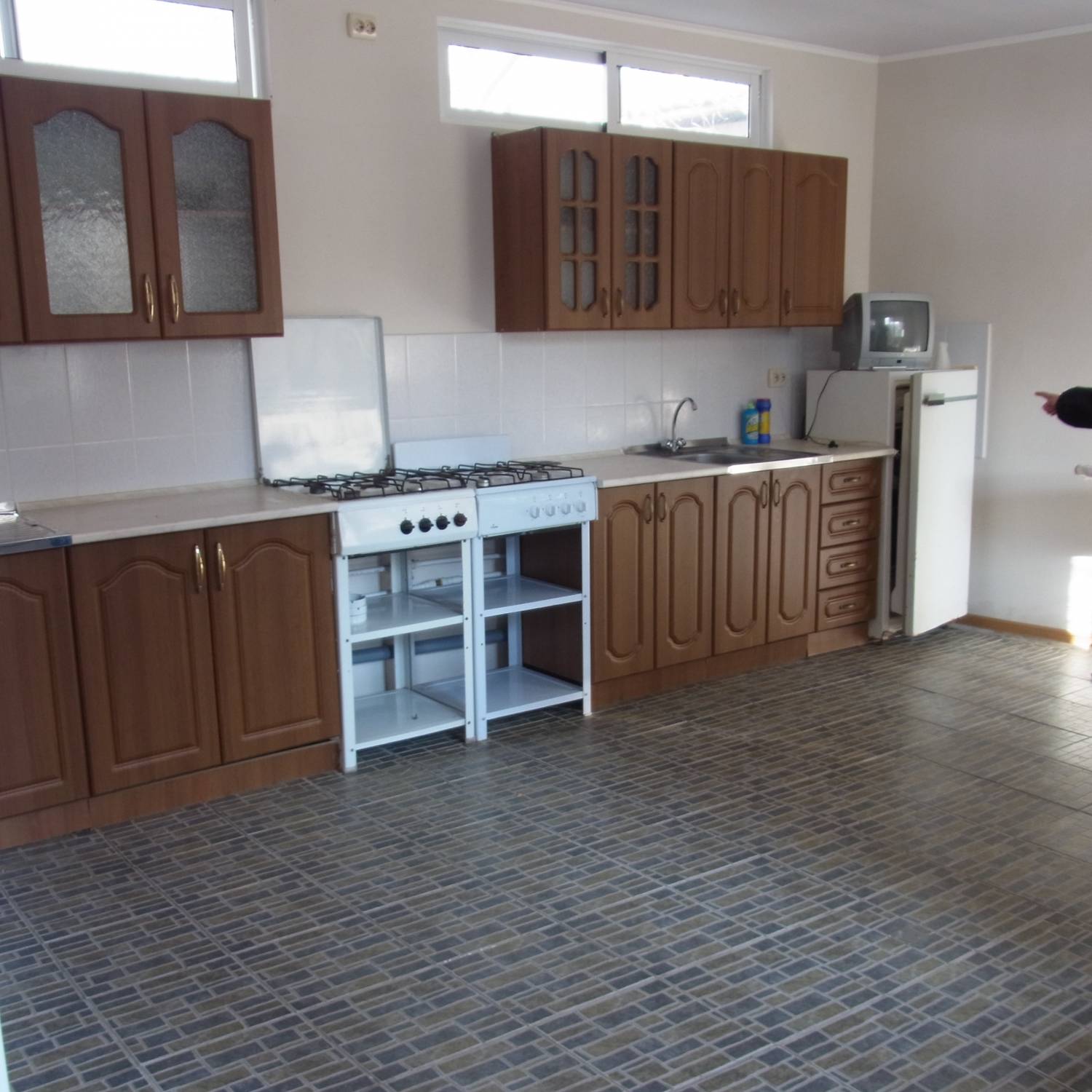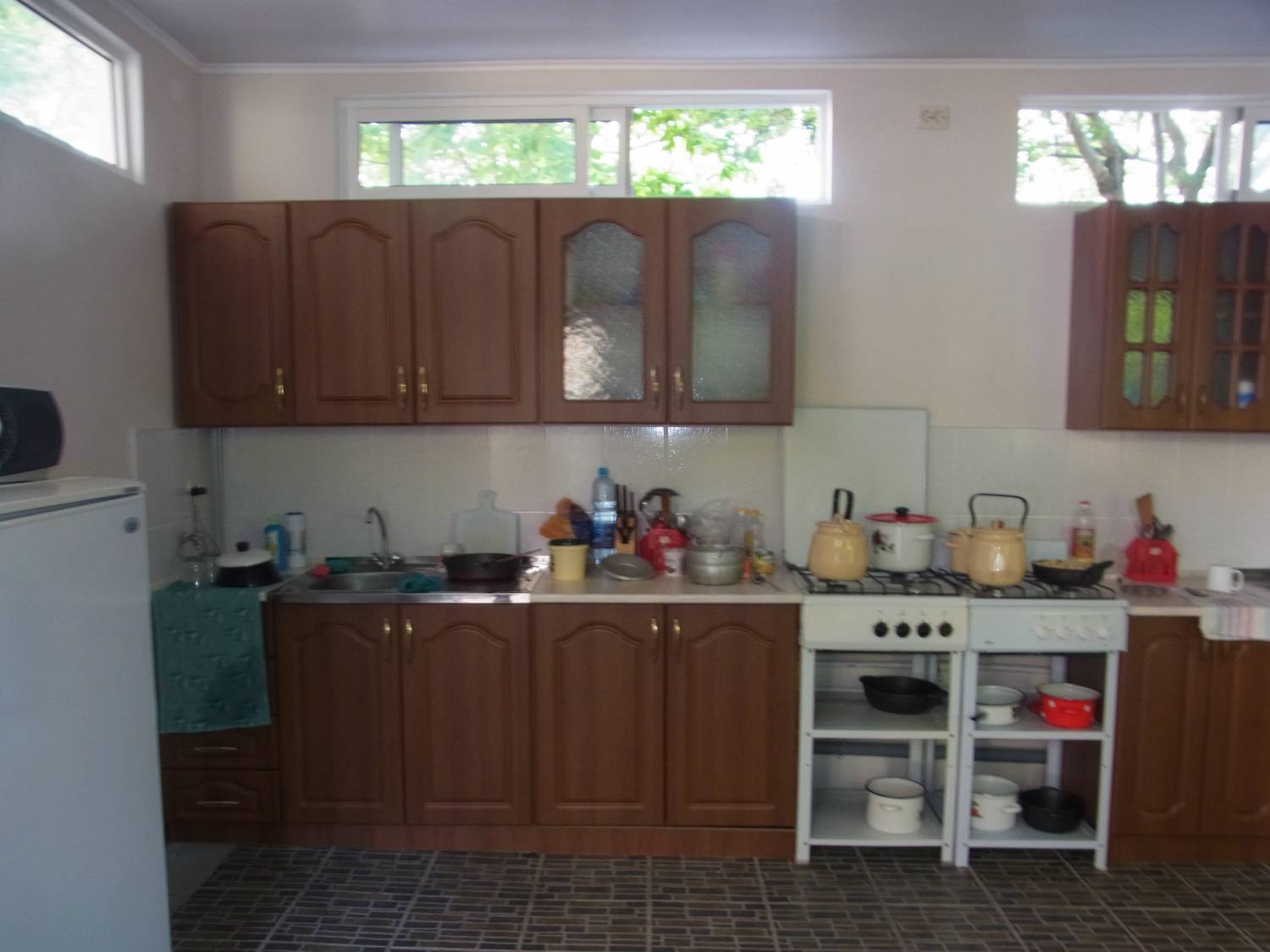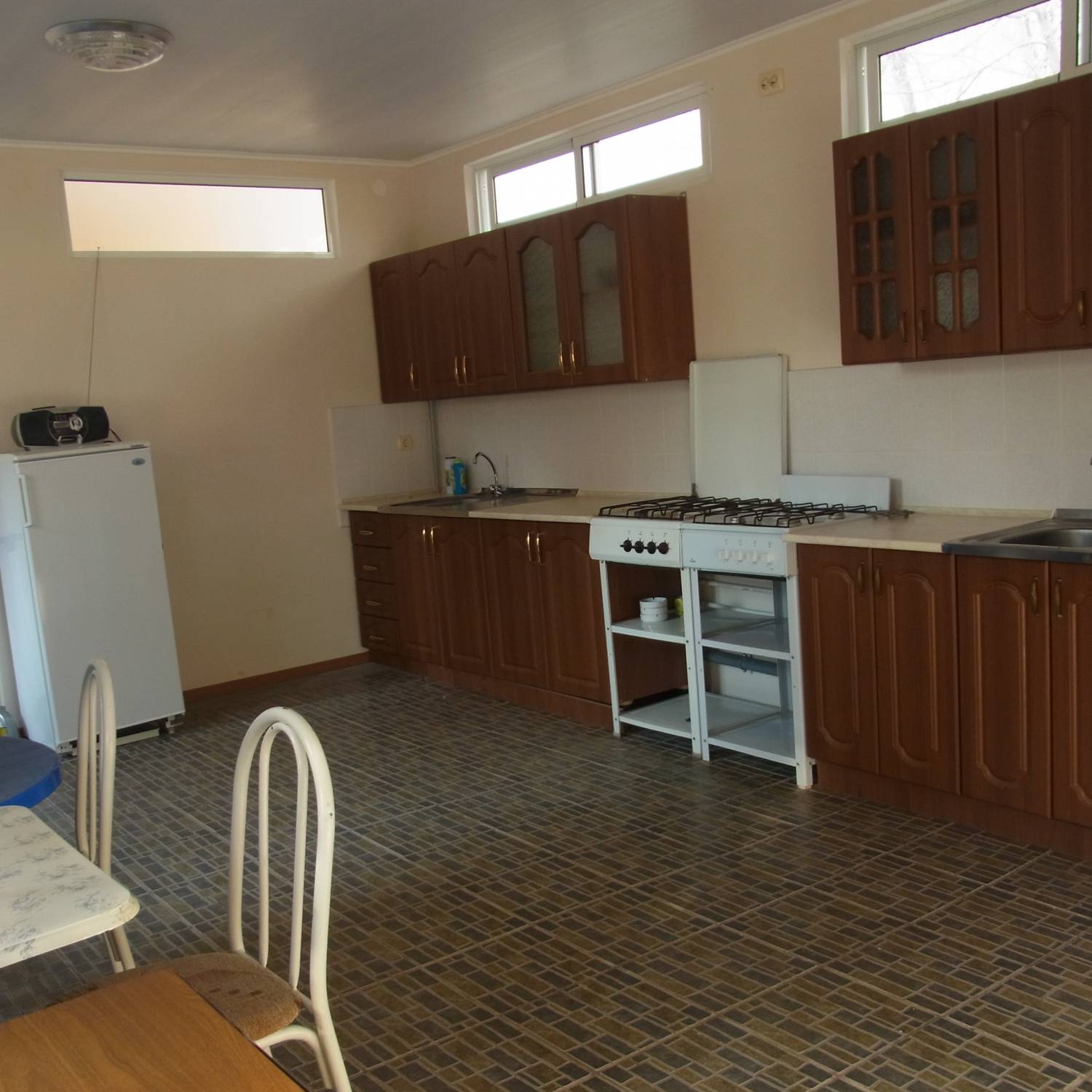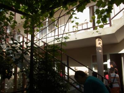 - это прекрасный вариант для тихого семейного отдыха. Дом окружён зелёным просторным двором и садом. Во дворе есть уютная беседка для отдыхающих, увитая виноградом, столики и мангал. Имеется оборудованная кухня с телевизором и холодильниками и необходимым набором посуды, предназначенная для самостоятельного приготовления пищи.