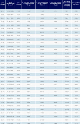 Внимание: стоимость тура рассчитывается по количеству ночей.