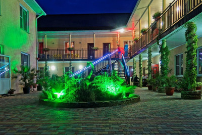 К услугам отдыхающих: большой благоустроенный двор оформленный растениями и цветами, альпийская горка с водопадом, подогреваемый бассейн для взрослых с шезлонгами и креслами для отдыха и надувной бассейн для детей, детская площадка, батут, качели, стол для тенниса, мангал (пользование может быть ограниченно в связи с действием Правил пожарной безопасности), бесплатный Wi-Fi на территории.