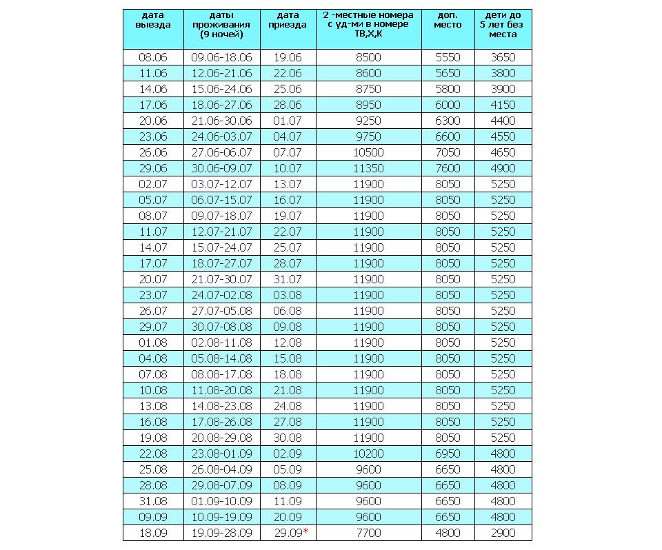 Внимание: стоимость тура рассчитывается по количеству ночей.