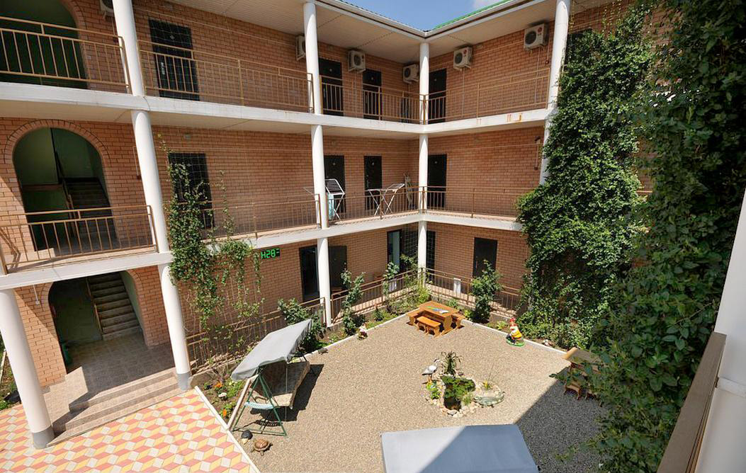 Размещение: трехэтажное кирпичное здание мотельного типа с благоустроенным двором.