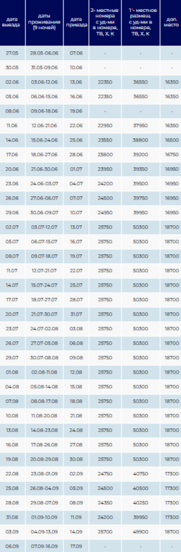 Внимание: стоимость тура рассчитывается по количеству ночей.