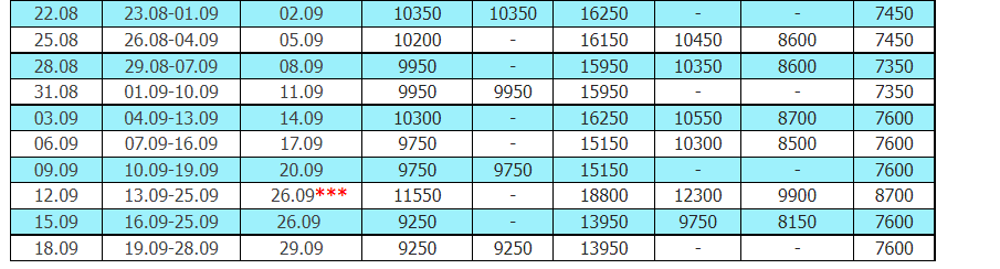 В стоимость входит: проезд на комфортабельном автобусе, проживание в гостинице 10 дней / 9 ночей, страховка пассажиров от несчастного случая на время пути, сопровождающий на маршруте.