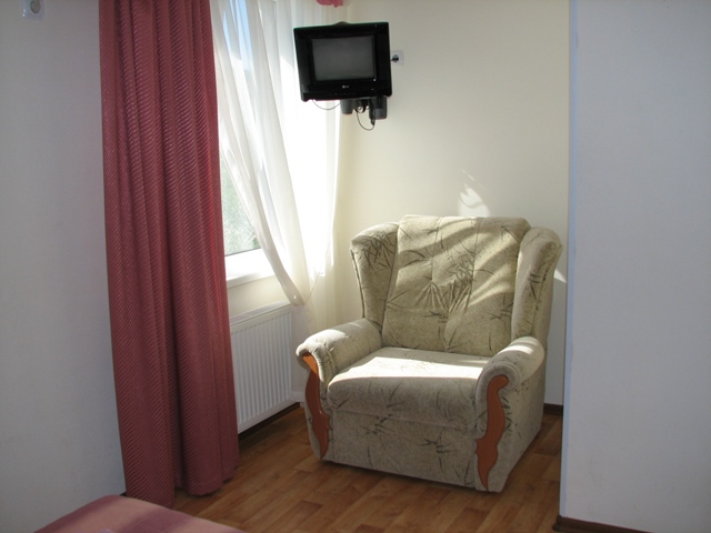 - 2-х местные номера «стандарт семейный». В номере: двуспальная кровать, дополнительное место (кресло-кровать), ТВ, холодильник, кондиционер, санузел. Дополнительное место подходит детям до 14 лет. В этом номере нельзя размещать двоих человек, только троих.