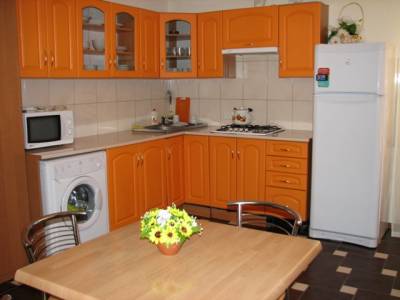 Есть просторная кухня с необходимым набором посуды, плитой, холодильником. Во дворе находится мангал для самостоятельного приготовления шашлыка, автостоянка.