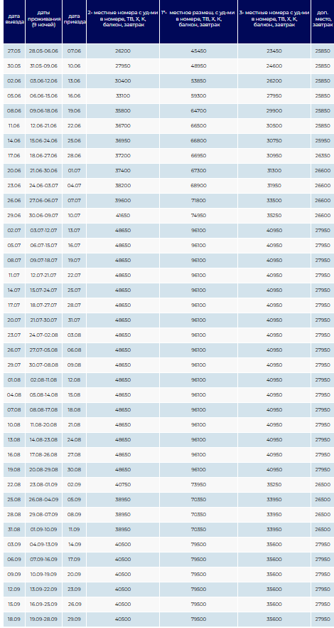 Внимание: стоимость тура рассчитывается по количеству ночей. В отеле применяется система динамической цены (точную стоимость уточняйте на момент бронирования).