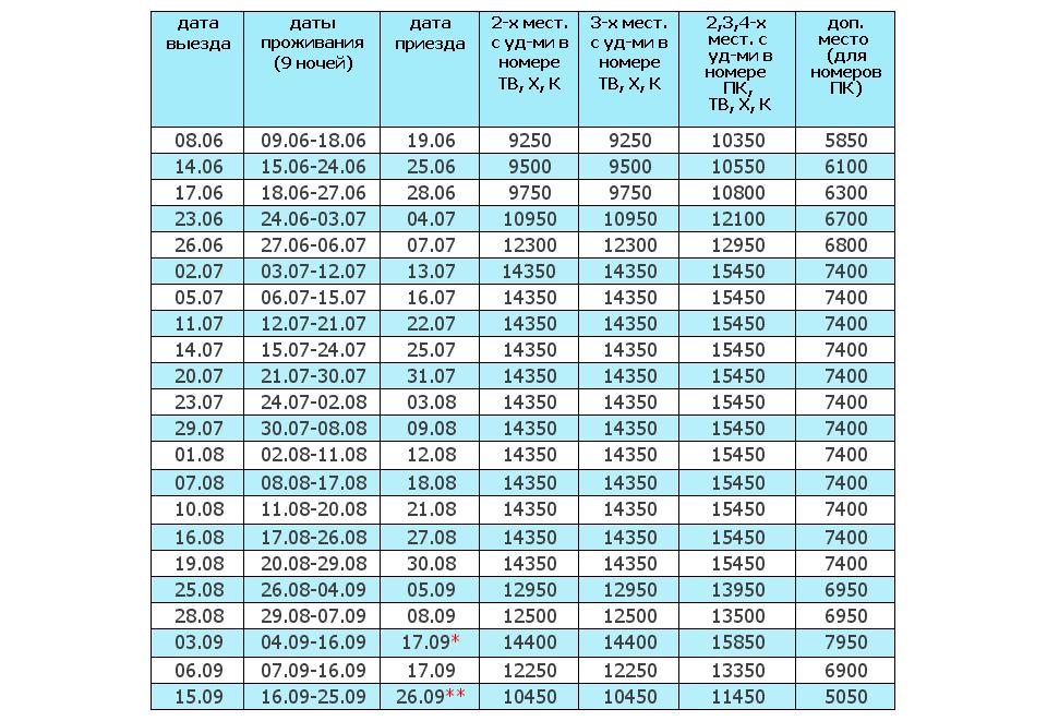 Внимание: стоимость тура рассчитывается по количеству ночей.